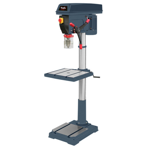 Taladro de columna con potencia de 1500 W, 12 velocidades de 200 a 1990 rpm, mandril automático de 20 mm y perforación máxima de 32 mm. Incluye una mesita de 47,5 x 42,5 cm para apoyar las piezas de perforación con posibilidad de bascularla hasta 45º.